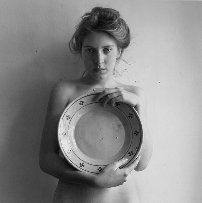 Hello Stefan, I am pleased that you enjoy the work. There are two versions of Francesca Woodman, one is with the large plate, another is without the plate found on my Portrait book cover. The idea for the session was prompted by the plate itself. I asked Francesca to join me in this work by posing with the plate. Some things happened spontaneously with her hair being brought down. She herself was a confident model, briefly my student. Robert Klein has an exclusive arrangement with me and he sets the prices. Ask him about the Art Money program. I believe you can make payments, though not sure. Thank you again for your interest.